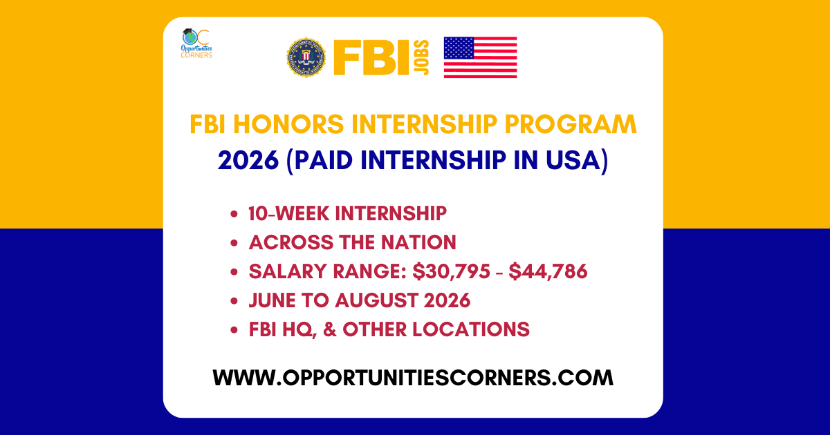 The post FBI Honors Internship Program 2026 (Paid Internship in USA) appeared first on Opportunities Corners.